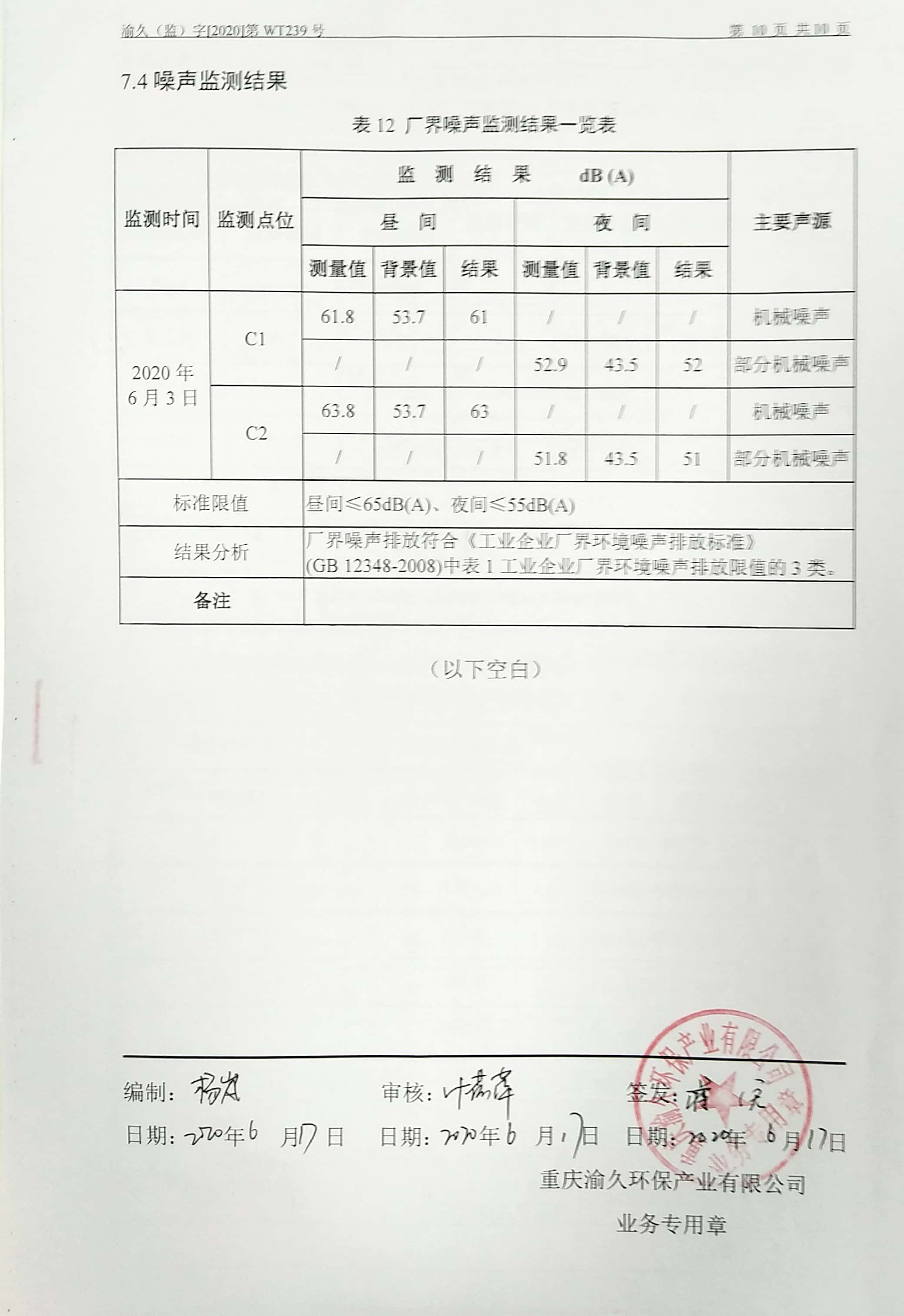 2020年6月17日,我司委托第三方機(jī)構(gòu)進(jìn)行了2020年度第二季度監(jiān)測,監(jiān)測項(xiàng)目為水氣聲、土壤,各項(xiàng)數(shù)據(jù)達(dá)標(biāo),現(xiàn)將監(jiān)測報(bào)告公示如下: