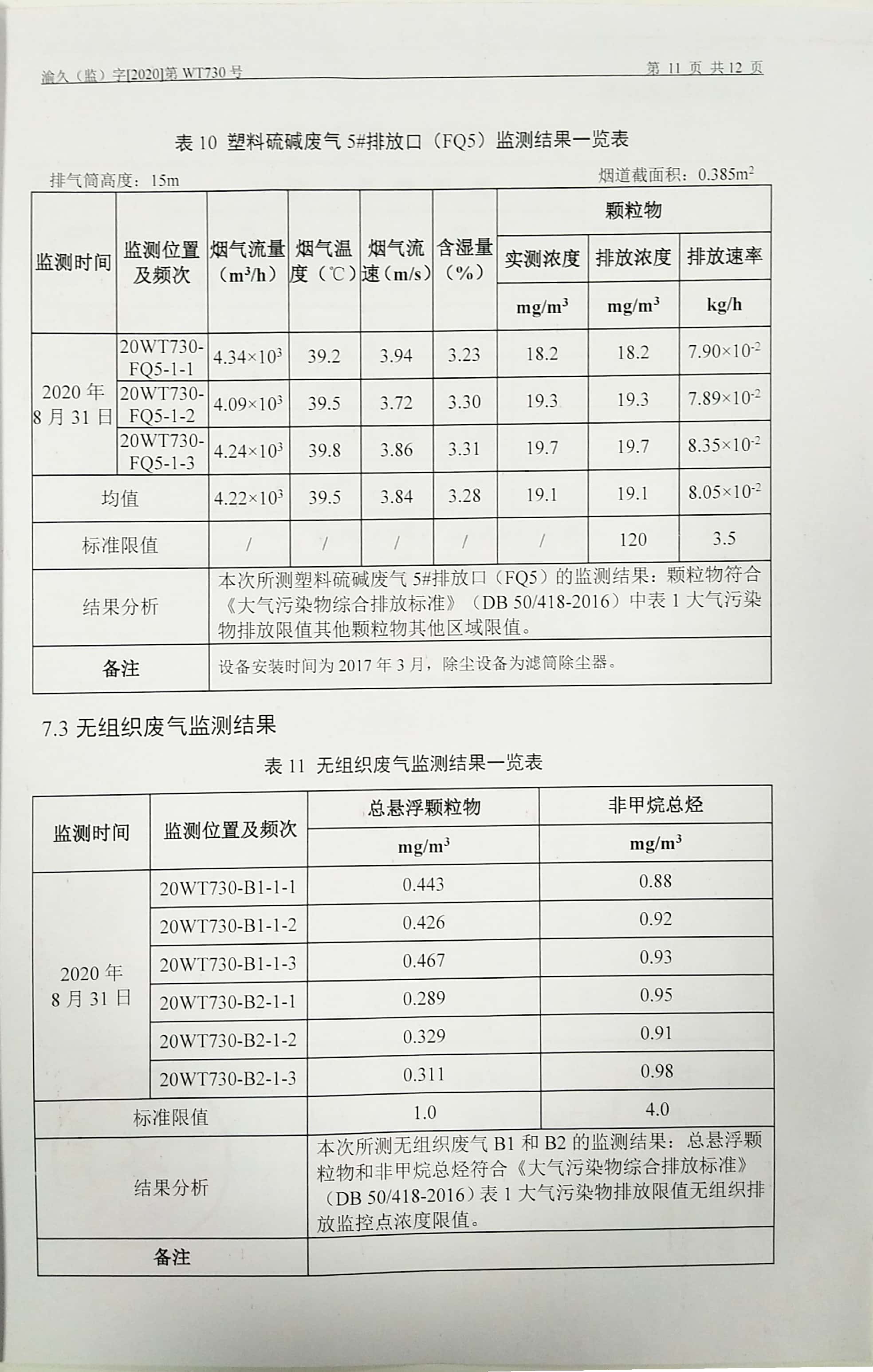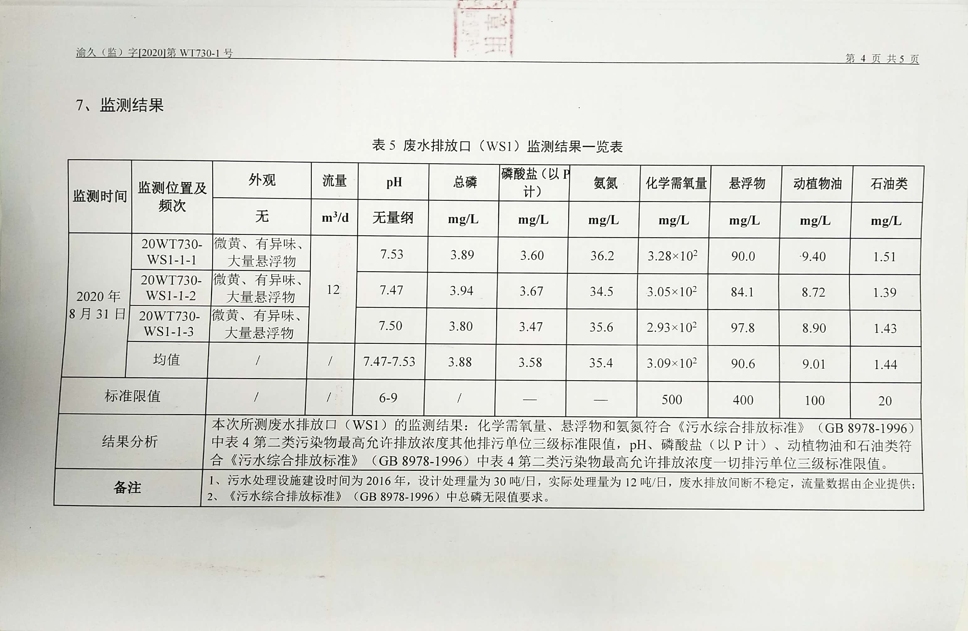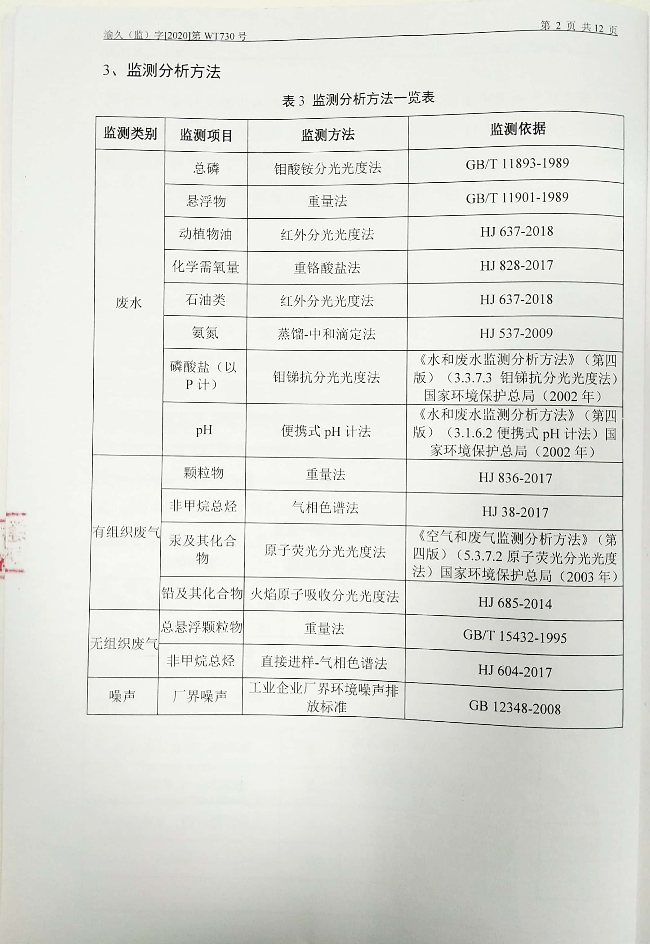 2020年9月26日,我司委托第三方機構進行了2020年度第三季度監測,監測項目為水氣聲,各項數據達標,現將監測報告公示如下: