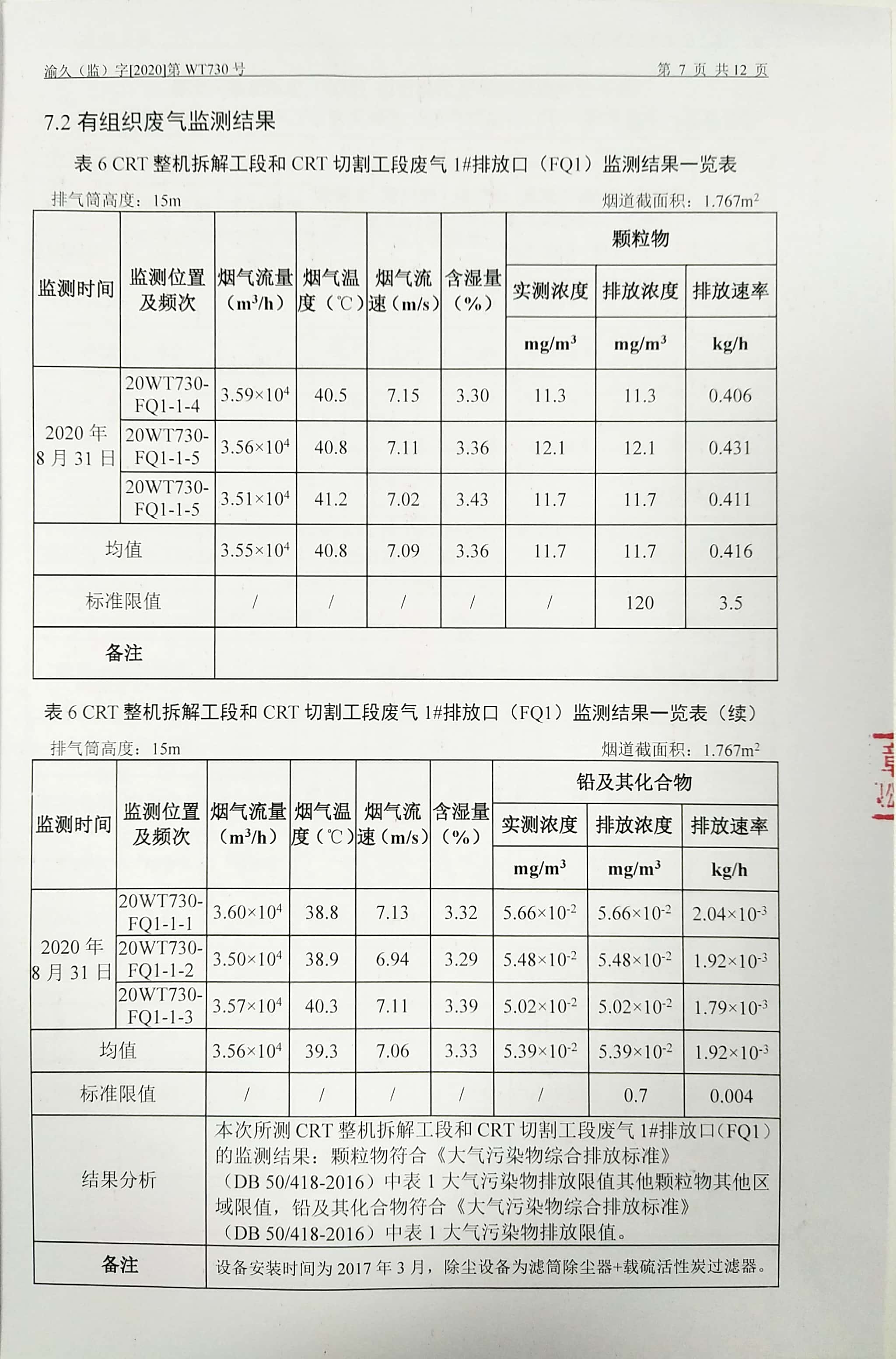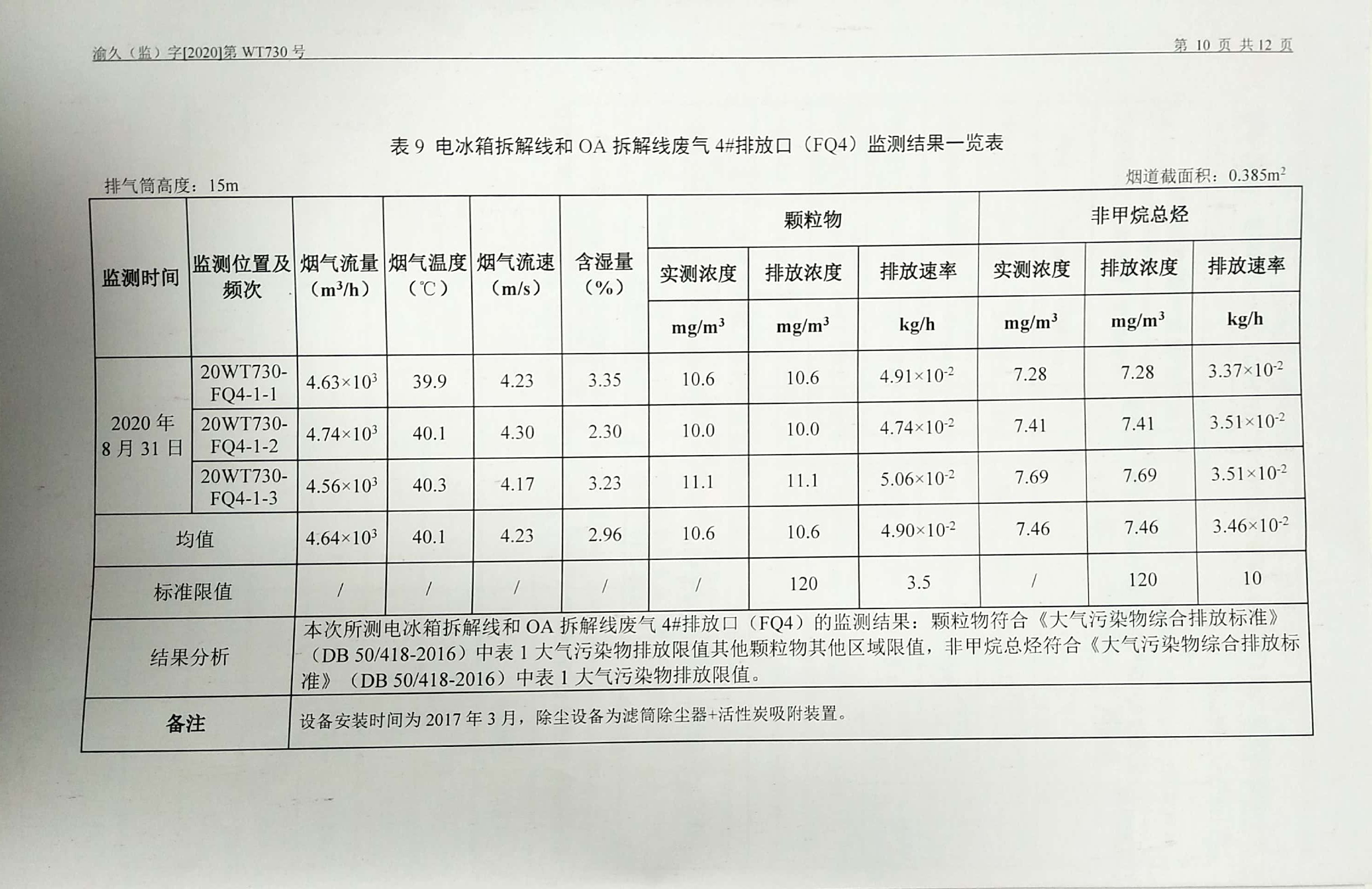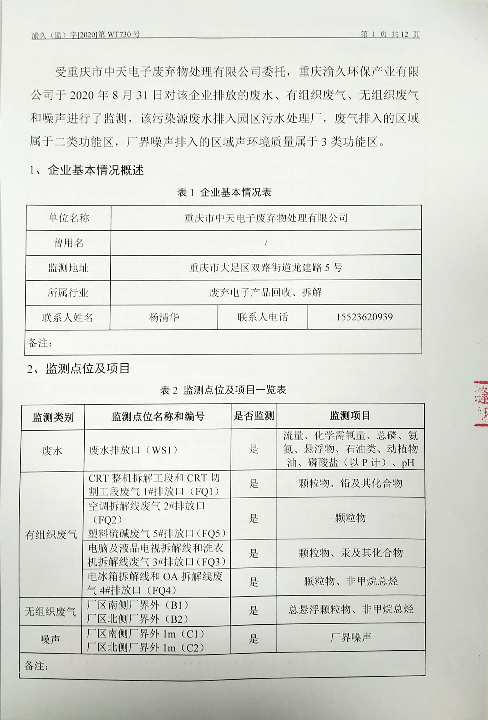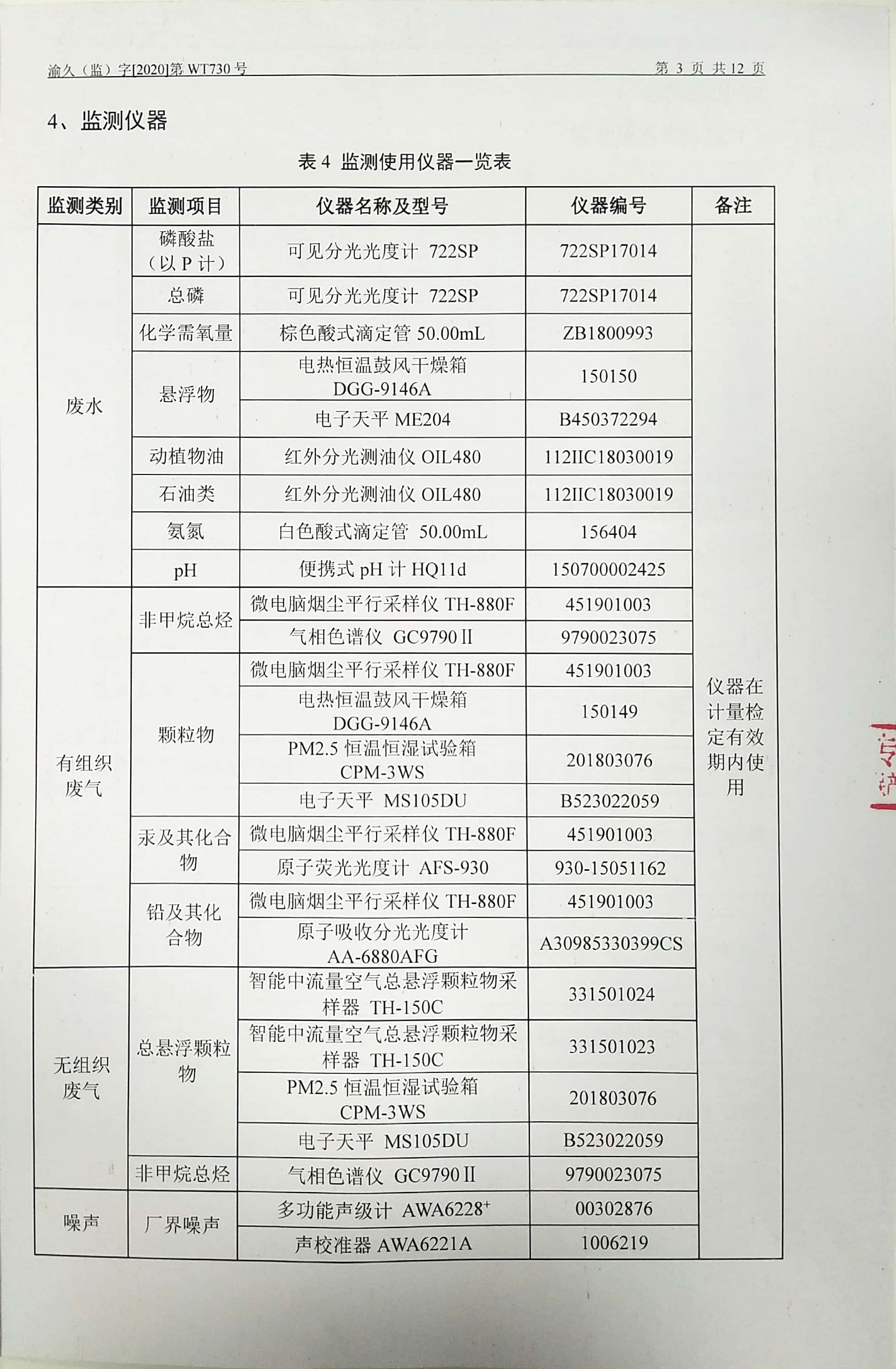 2020年9月26日,我司委托第三方機構進行了2020年度第三季度監測,監測項目為水氣聲,各項數據達標,現將監測報告公示如下: