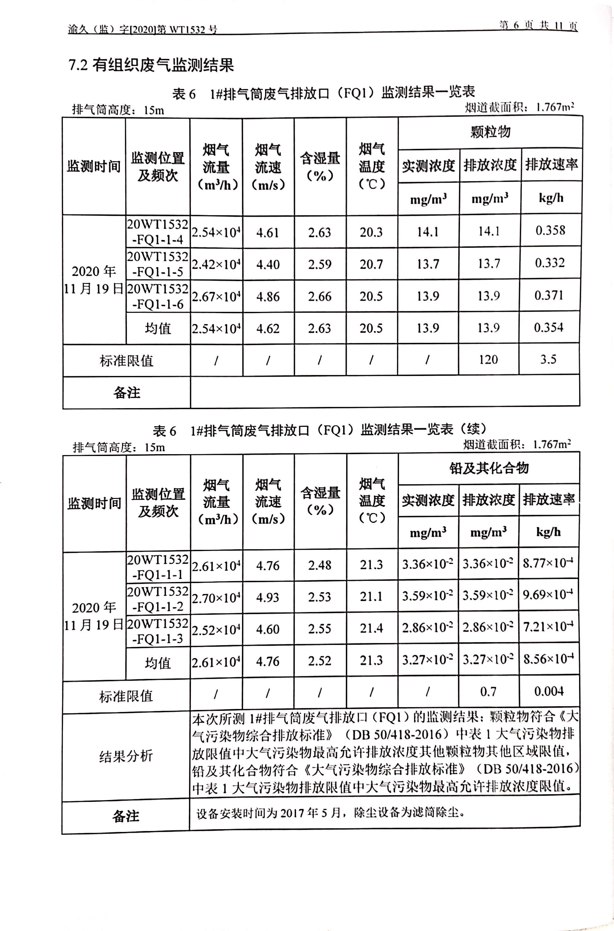 2020年12月18日,我司委托第三方機(jī)構(gòu)進(jìn)行了2020年度第四季度監(jiān)測(cè),監(jiān)測(cè)項(xiàng)目為水氣聲,各項(xiàng)數(shù)據(jù)達(dá)標(biāo),現(xiàn)將監(jiān)測(cè)報(bào)告公示如下: