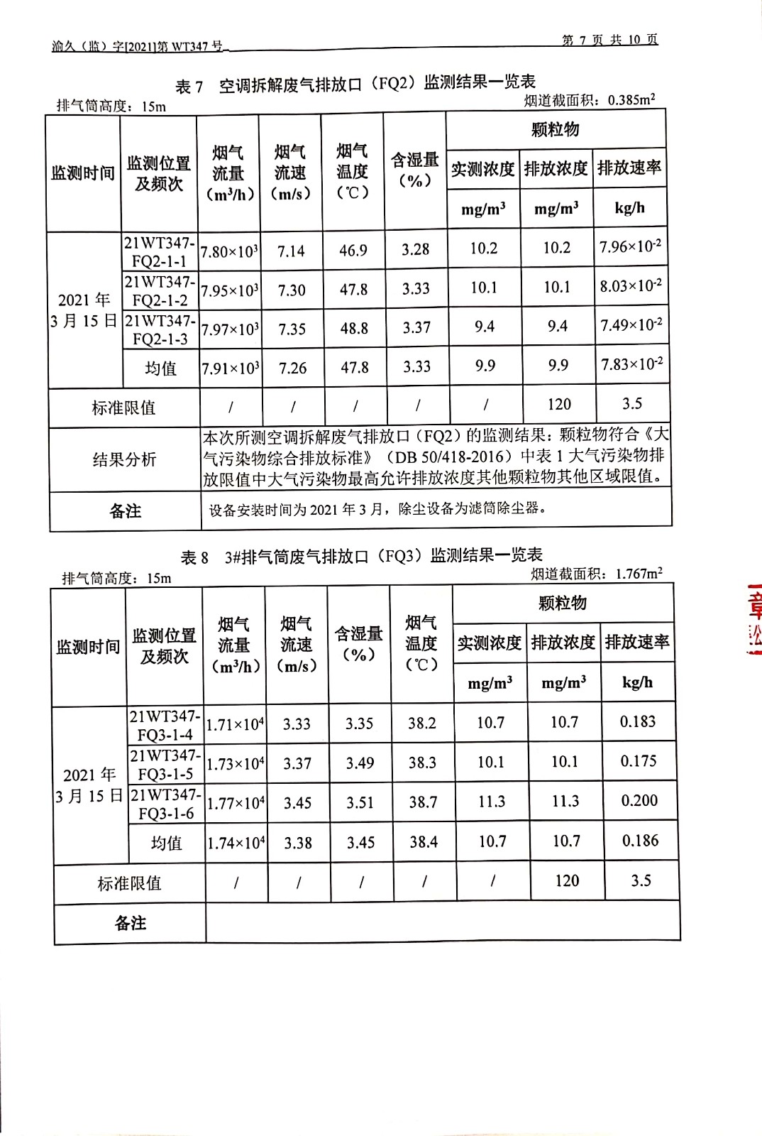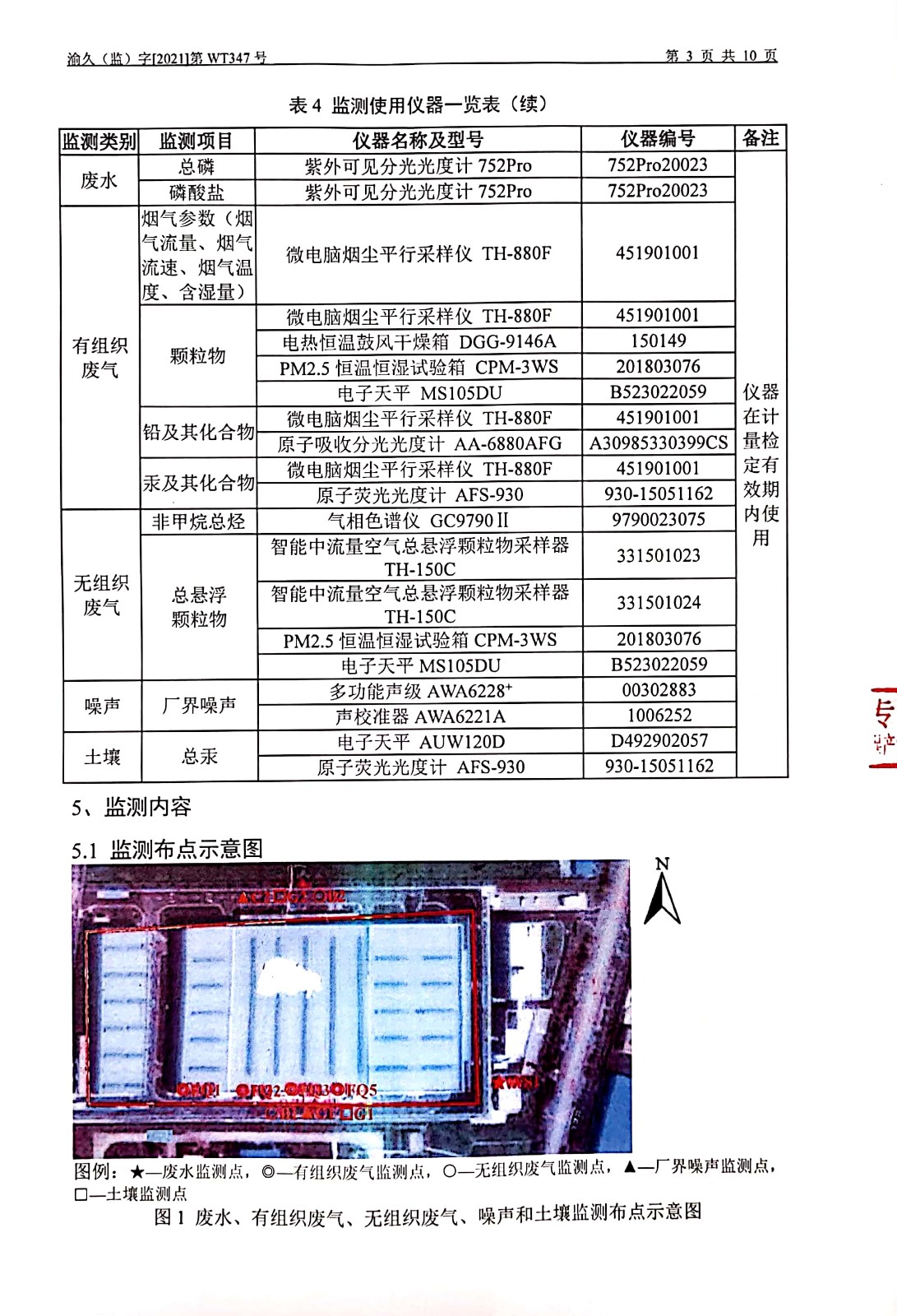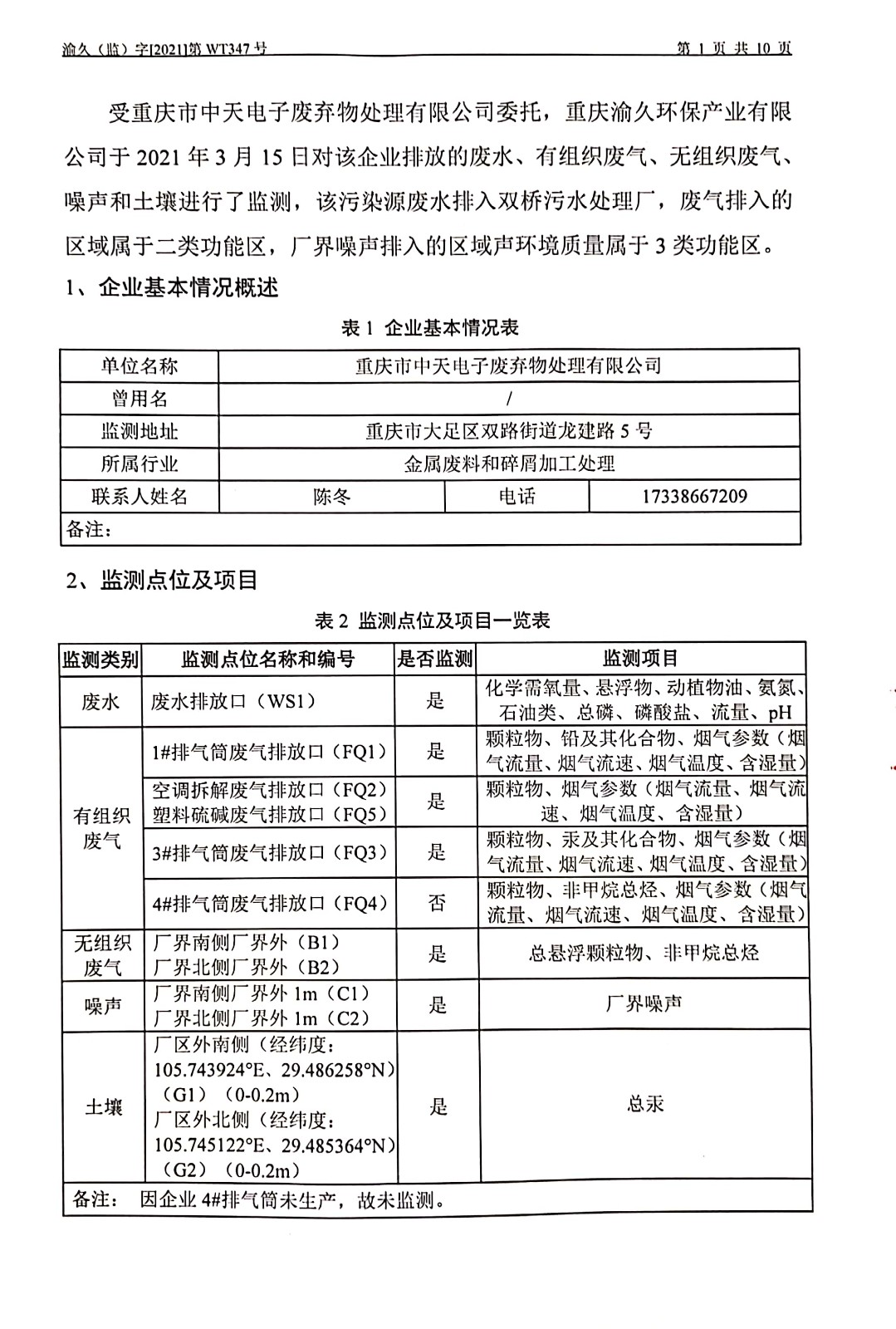 2021年3月15日,我司委托第三方機構進行了2021年度第一季度監測,監測項目為水氣聲,各項數據達標,現將監測報告公示如下: