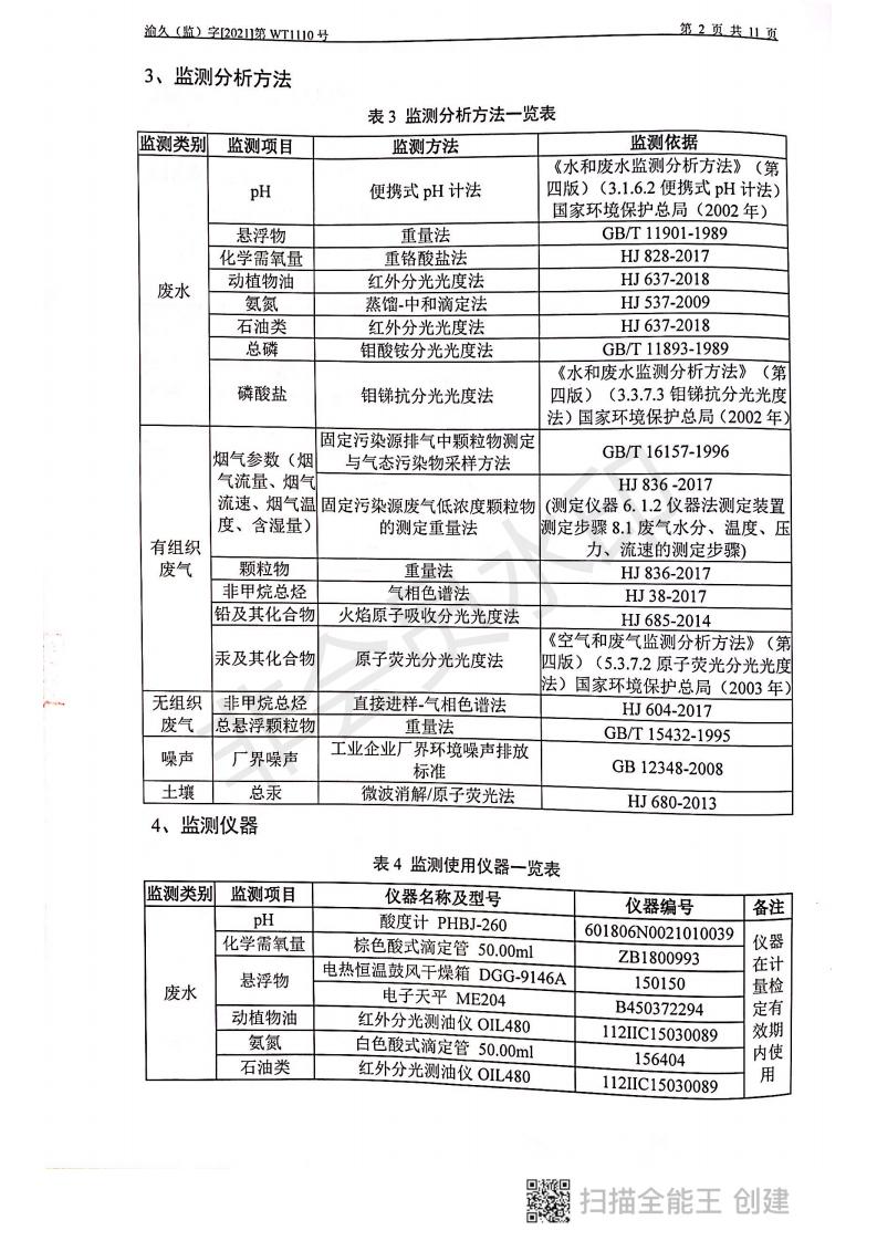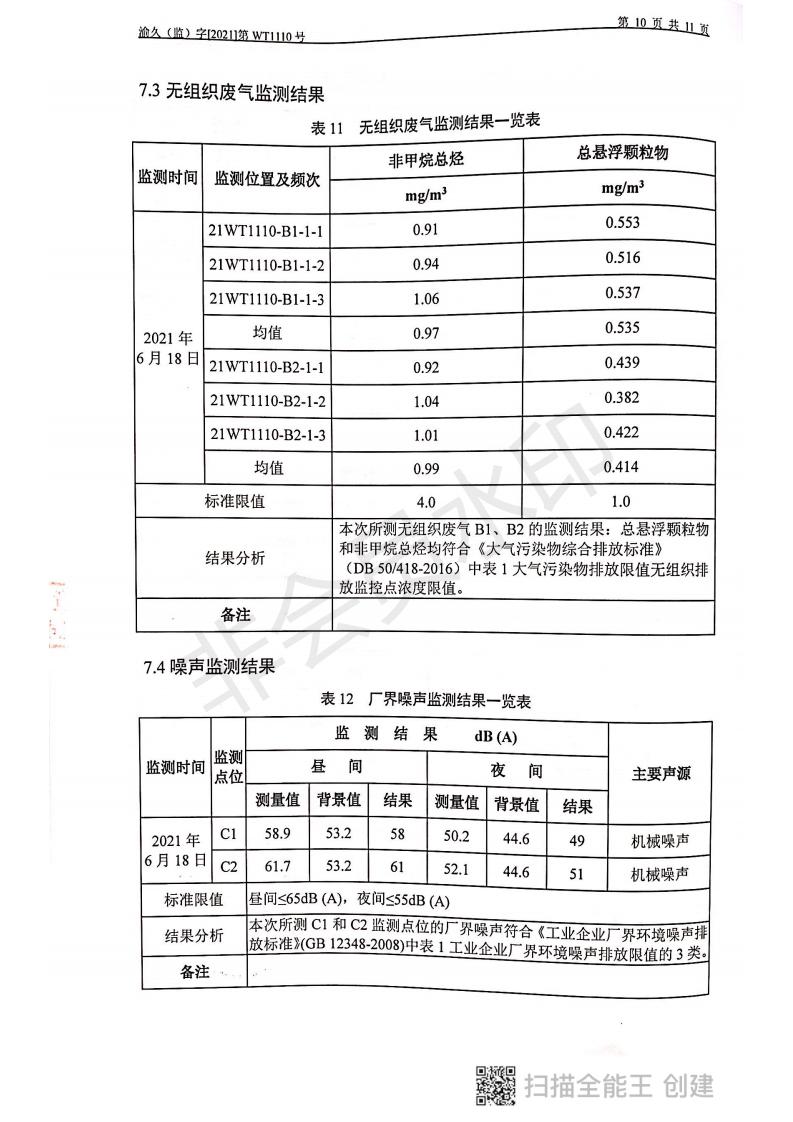 2021年6月18日,我司委托第三方機構進行了2021年度第二季度監測,監測項目為水氣聲,各項數據達標,現將監測報告公示如下: