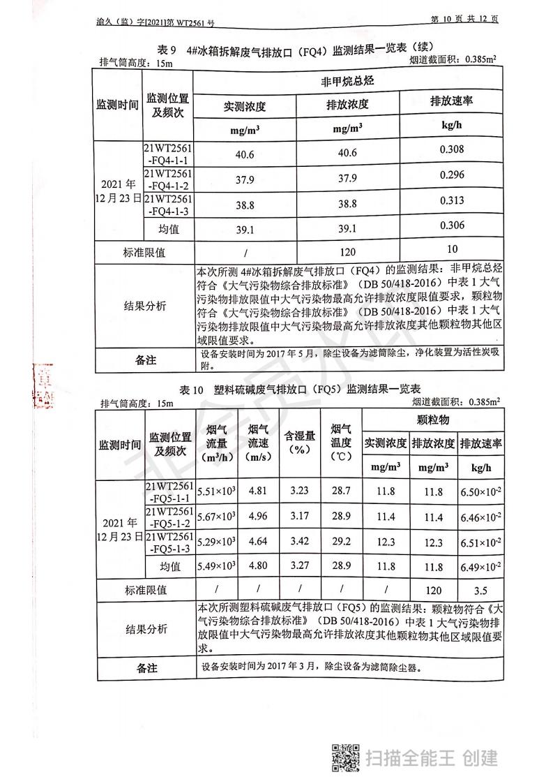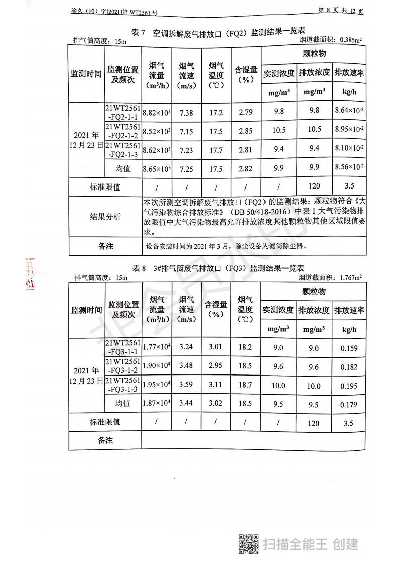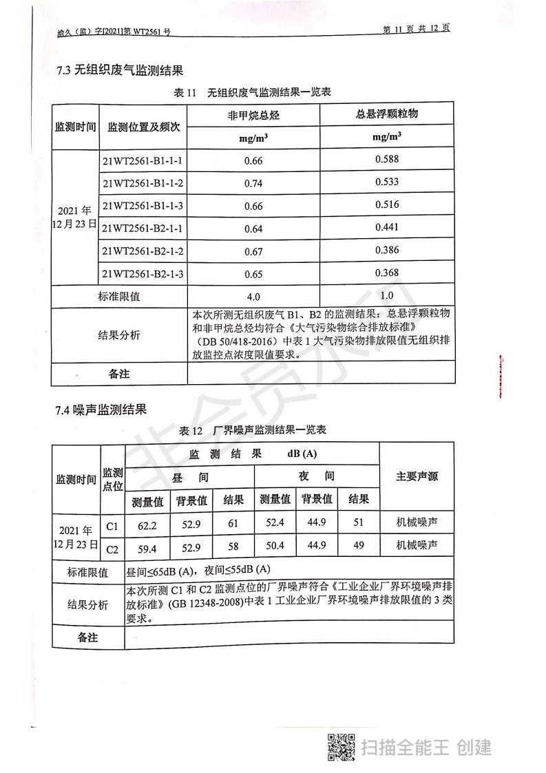 2021年12月23日,我司委托第三方機構進行了2021年度第四季度監測,監測項目為水氣聲,各項數據達標,現將監測報告公示如下: