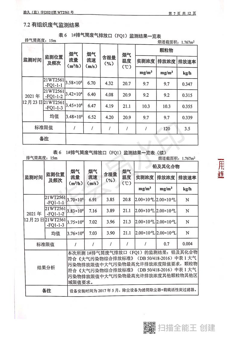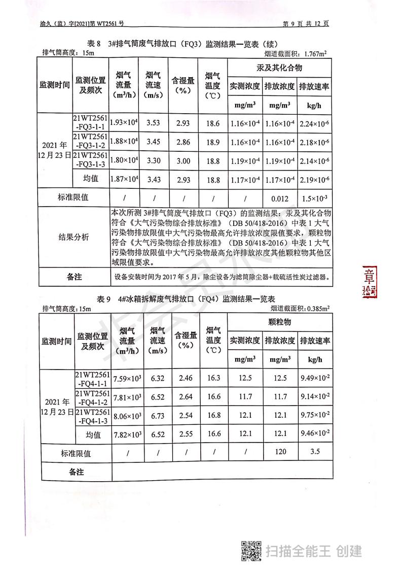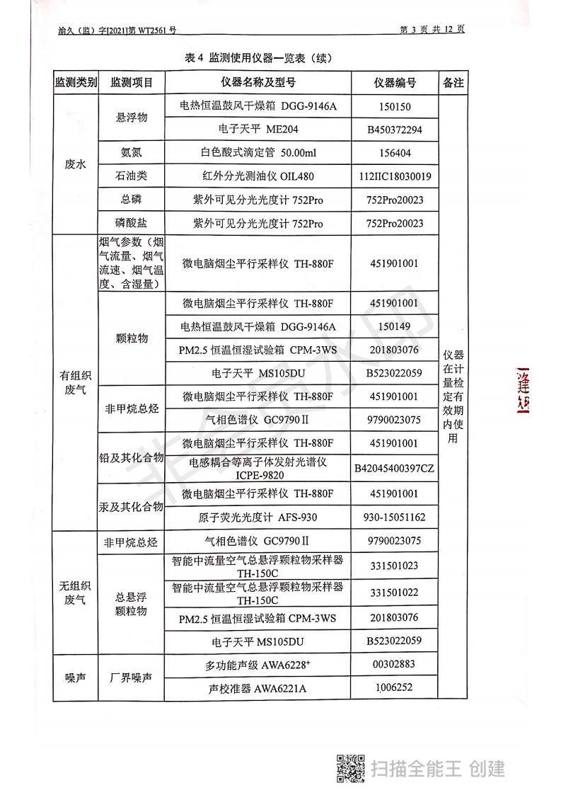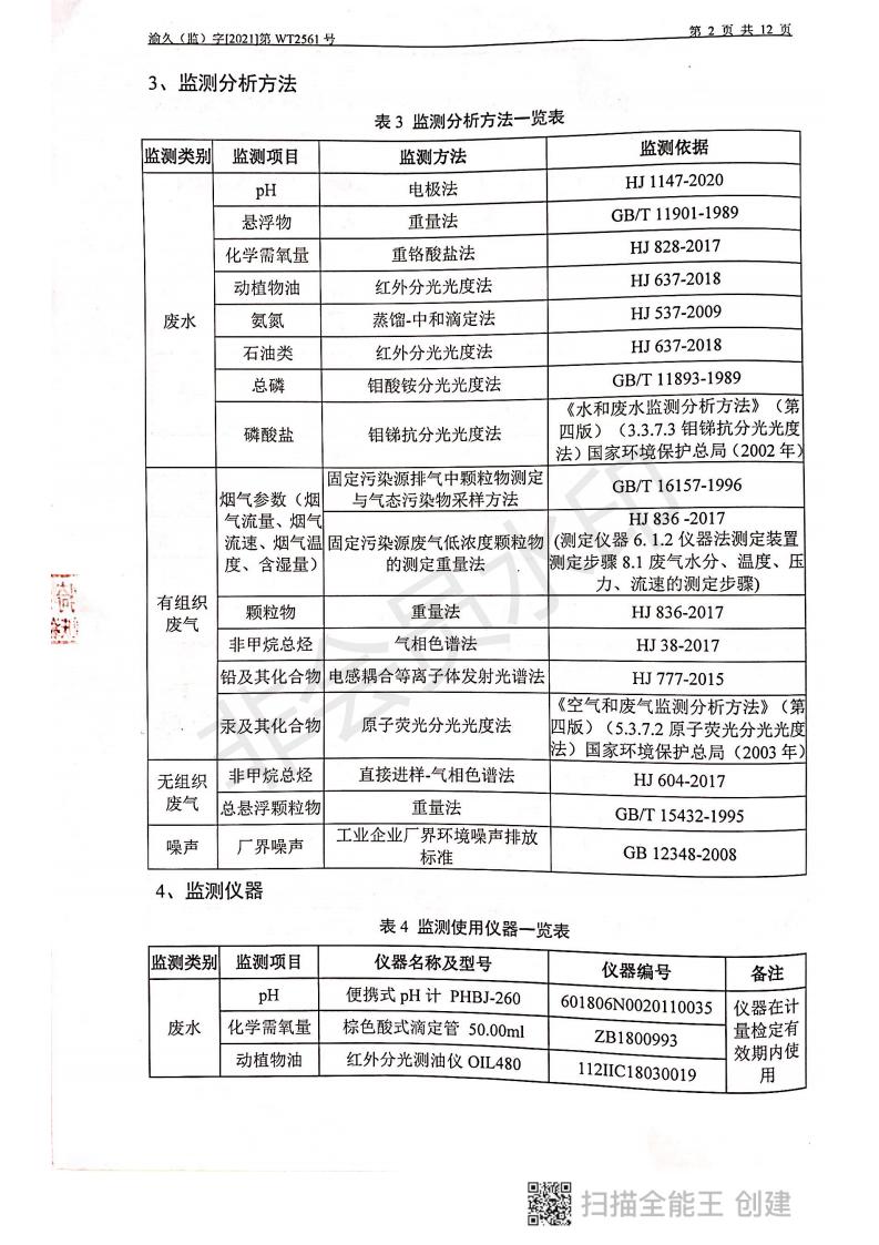 2021年12月23日,我司委托第三方機構進行了2021年度第四季度監測,監測項目為水氣聲,各項數據達標,現將監測報告公示如下:
