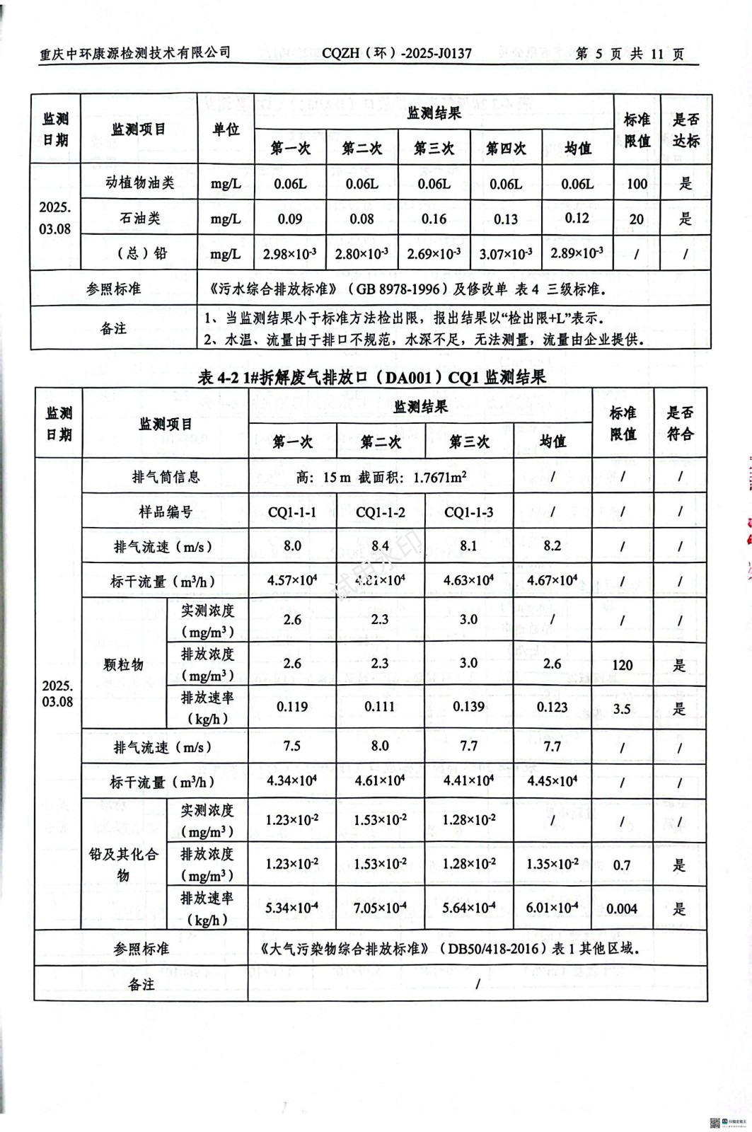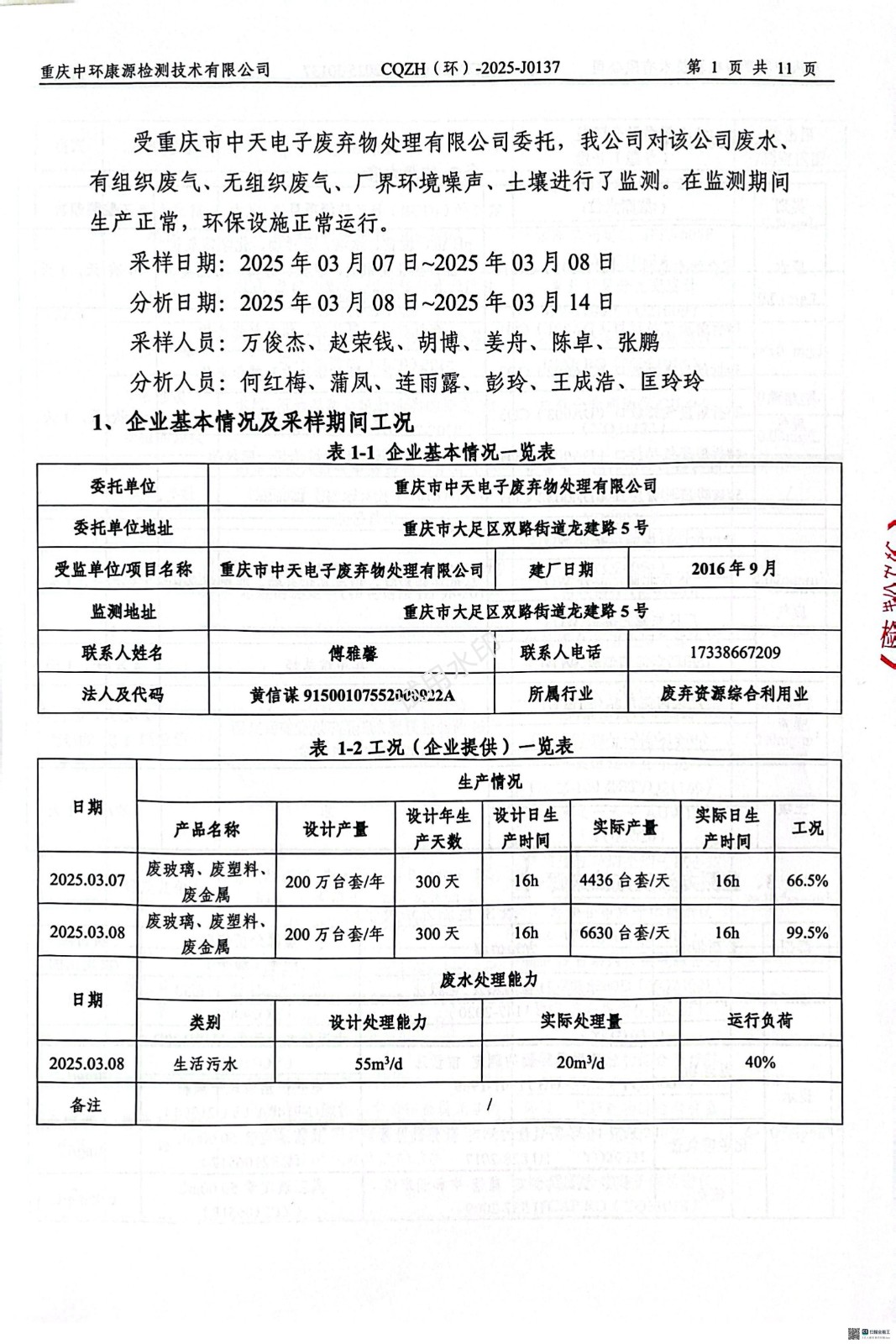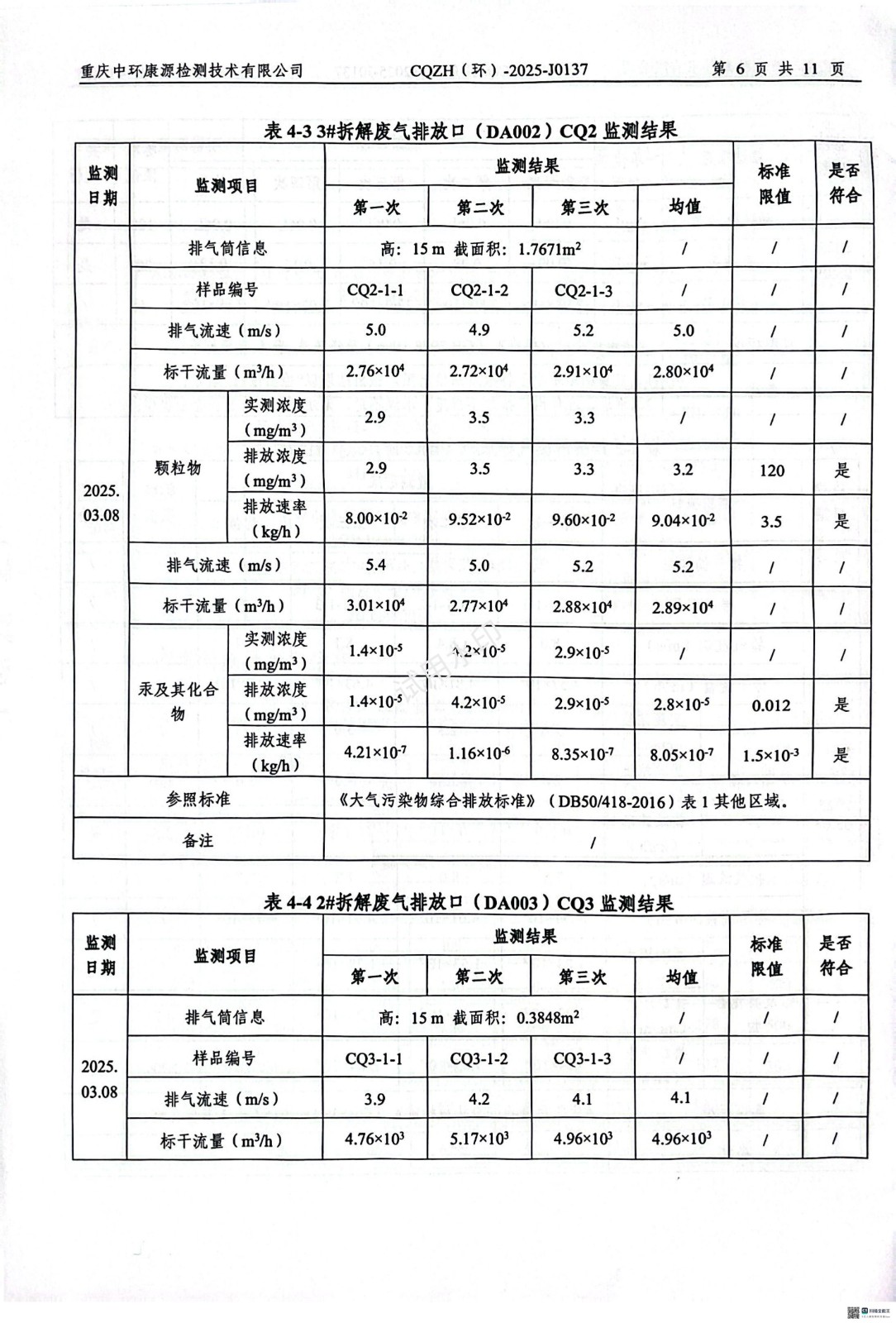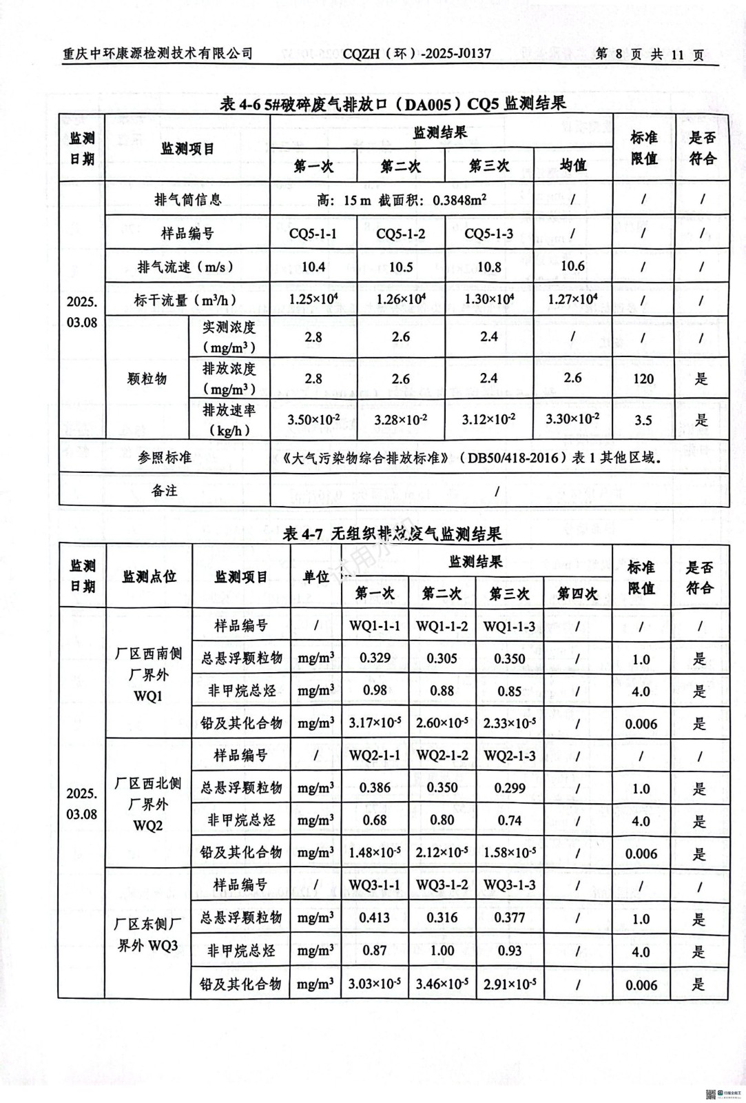 2025年3月7日,我司委托第三方機構(gòu)進行了2025年度第一季度監(jiān)測,監(jiān)測項目為水氣聲,各項數(shù)據(jù)達標,現(xiàn)將監(jiān)測報告公示如下: