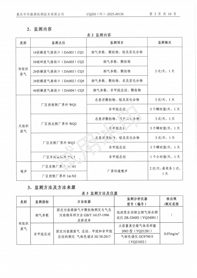 2025年4月15日,我司委托第三方機構進行了2025年度第二季度監測,監測項目為水氣聲,各項數據達標,現將監測報告公示如下: